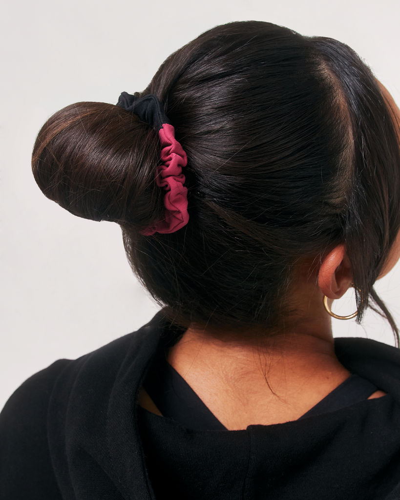 Complete your gym look with a hair accessory to match. Two-toned scrunchi pairs perfectly with our Swift Keyhole bra and Vendetta Leggings or can add a pop of color to your outfit. Made in our breathable, sweat wicking, 4 way stretch Cloudlux fabric.