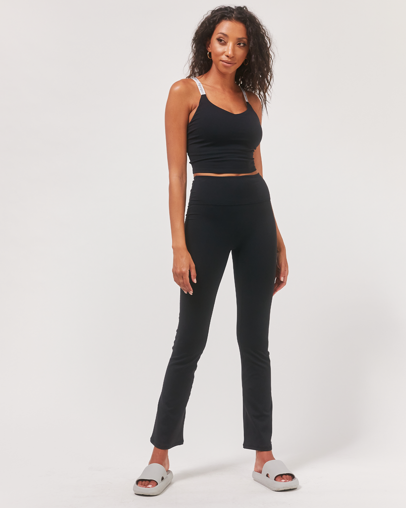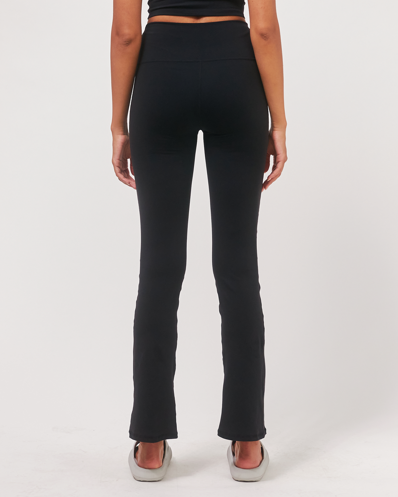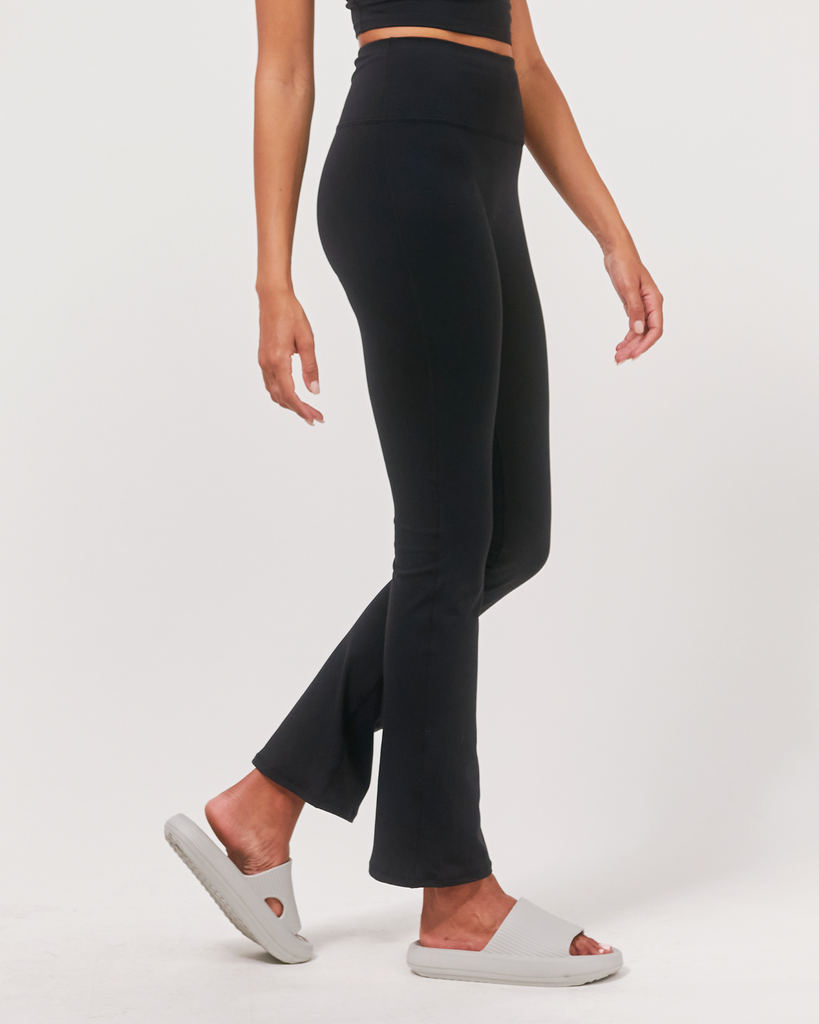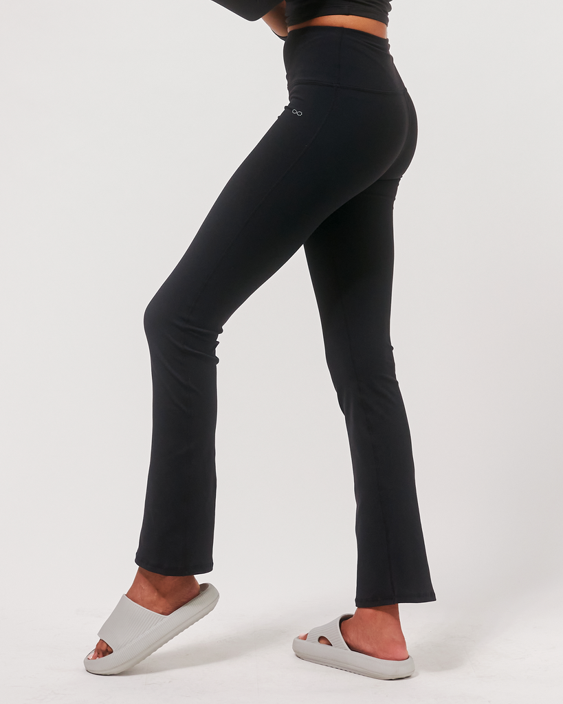 The flattering bootcut leggings with the right amount of flare to keep distractions to a minimum whether you are out running errands or during practice. Features a high waist and small inner pocket at waistband for storage. Style with your favorite low high top sneakers or with heels for an everyday or office look. Made in our soft and breathable, cotton like finish Cloudlux fabric. It is 4 way stretch and sweat drying, making it comfortable to wear on a daily. Inseam 29.5"
