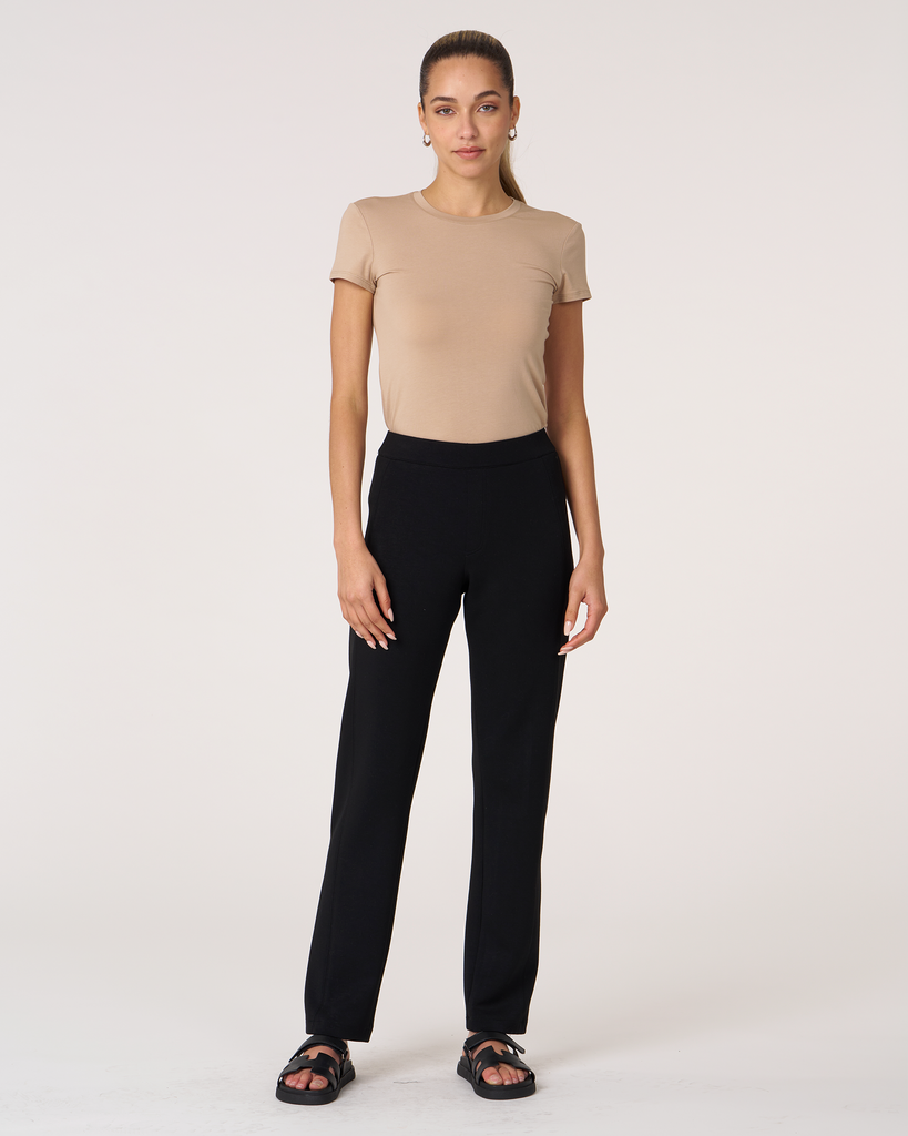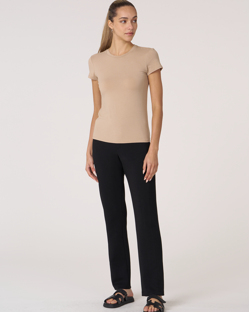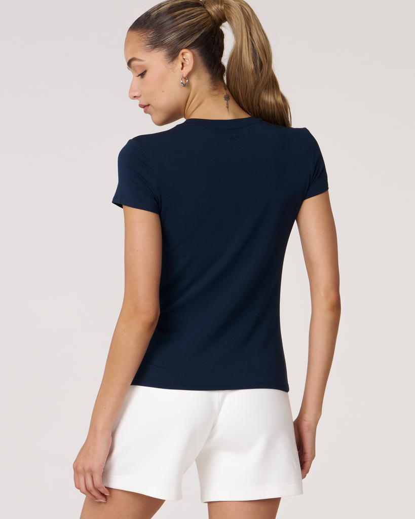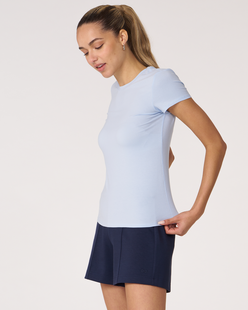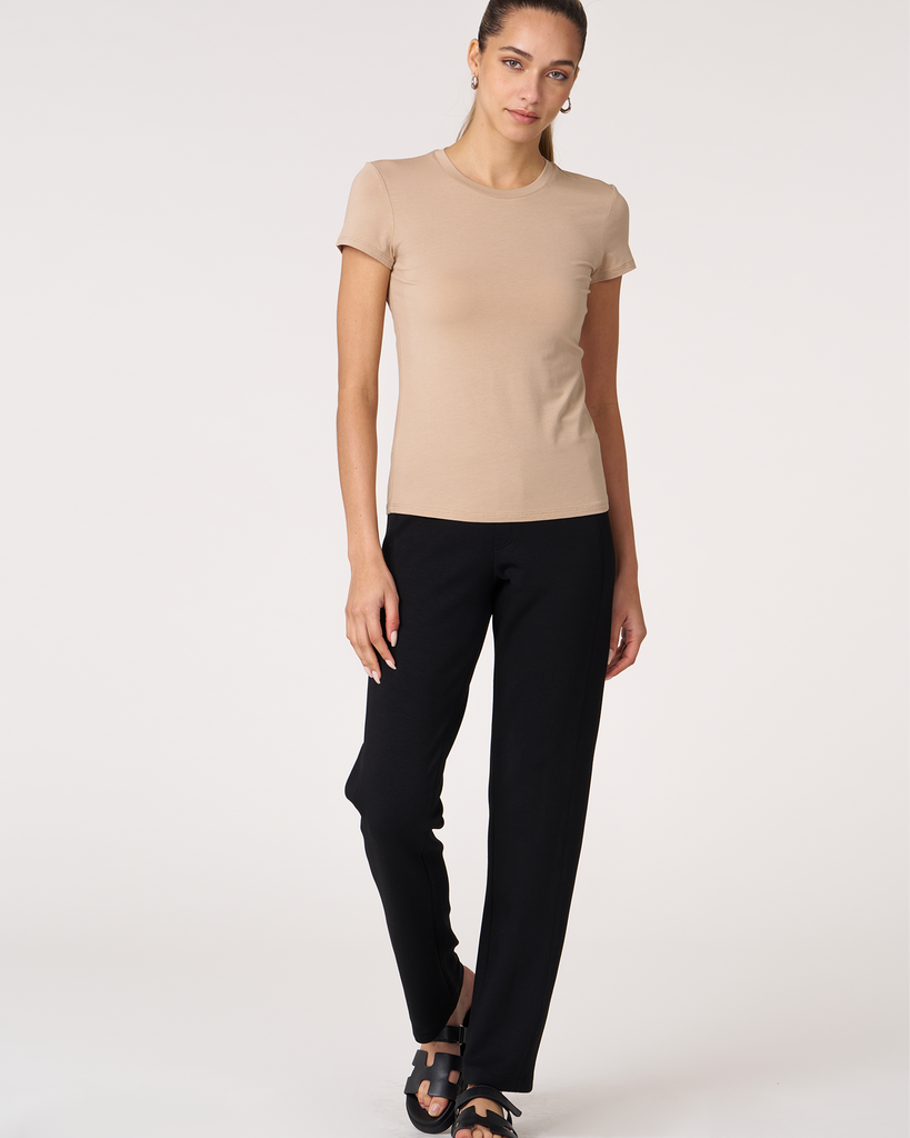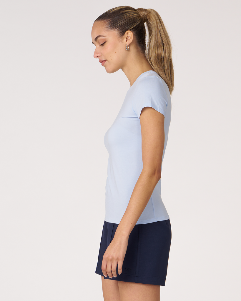 Meet your new go-to crewneck tee that is slim-fitted and can be worn as is or tucked in. A wardrobe staple that is made in soft pima cotton, cool to touch modal, and a hint of stretch for ultimate comfort and style. Biocompact finish keeps the fabric long lasting and smooth.
