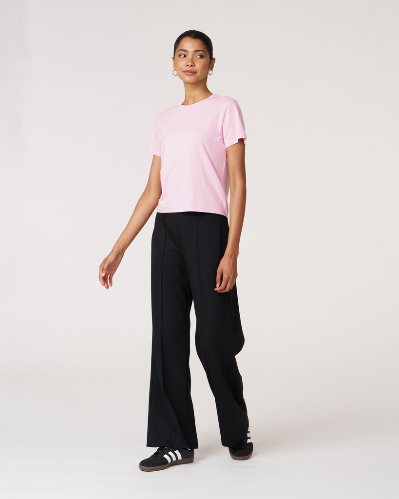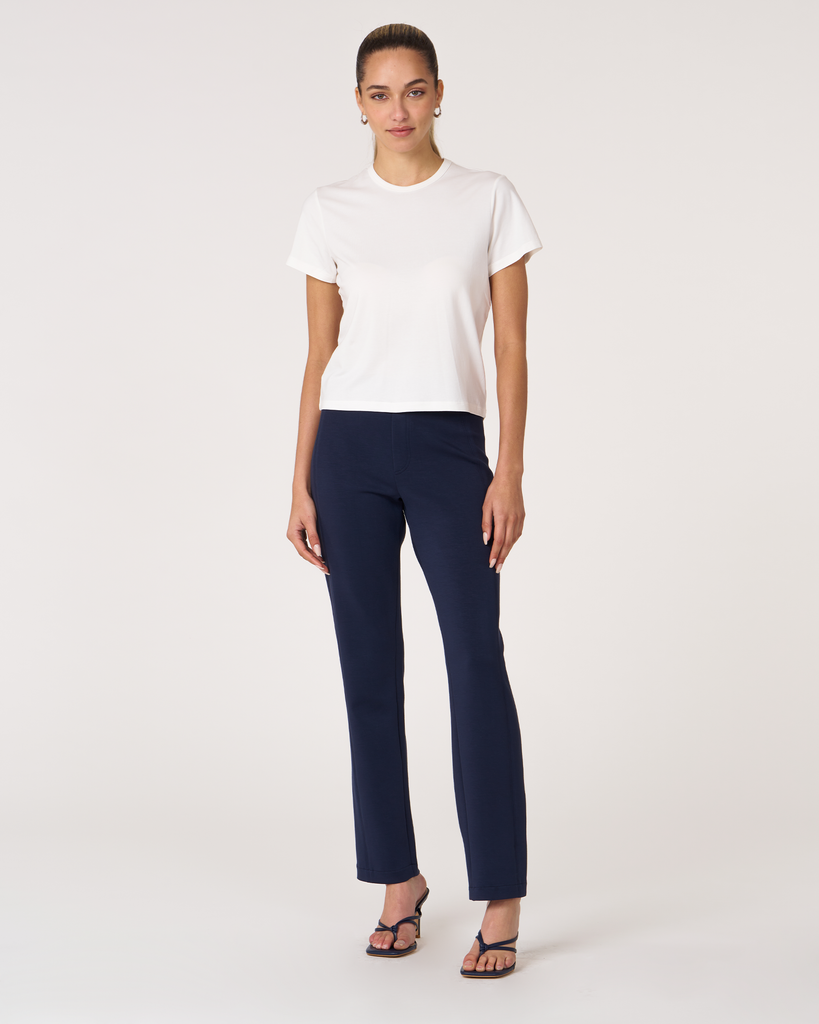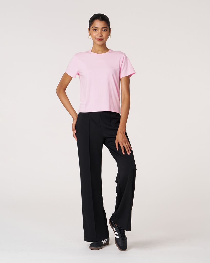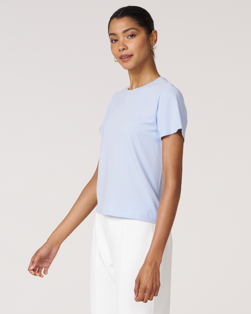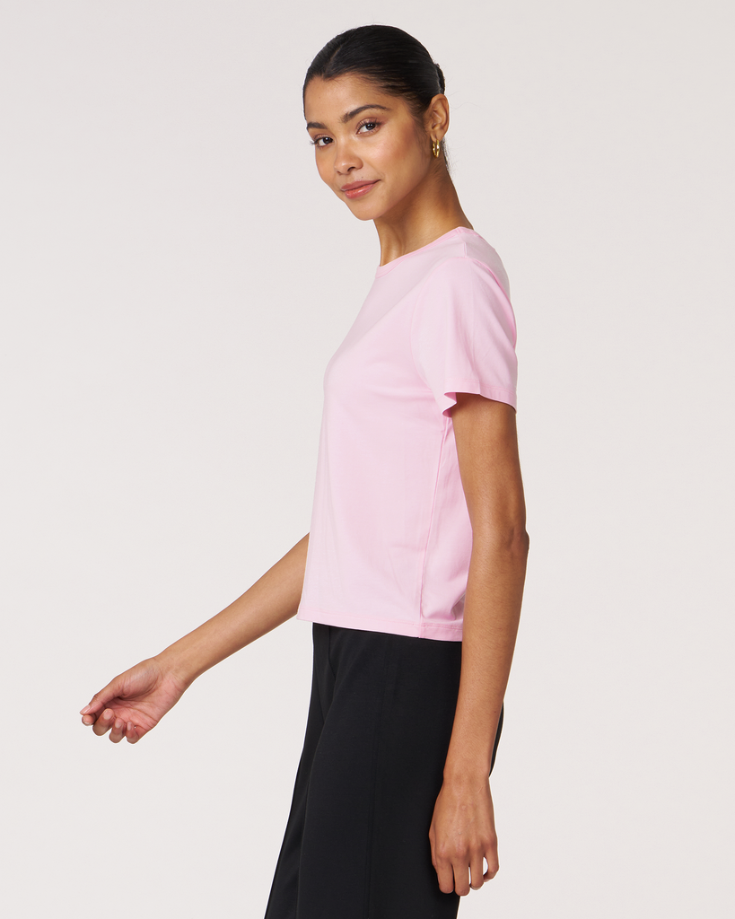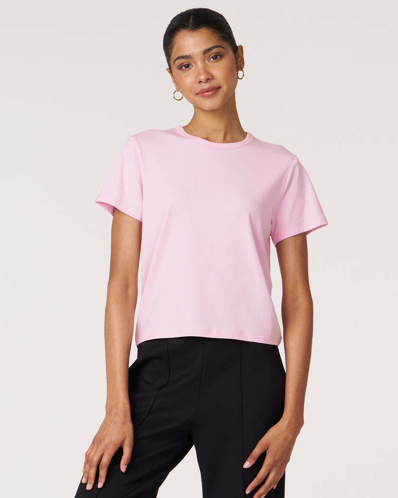 Meet your new go-to crop tee that effortlessly pairs perfectly with leggings. A wardrobe staple that is made in soft pima cotton, cool to touch modal, and a hint of stretch for ultimate comfort and style. Biocompact finish keeps the fabric long lasting and smooth.