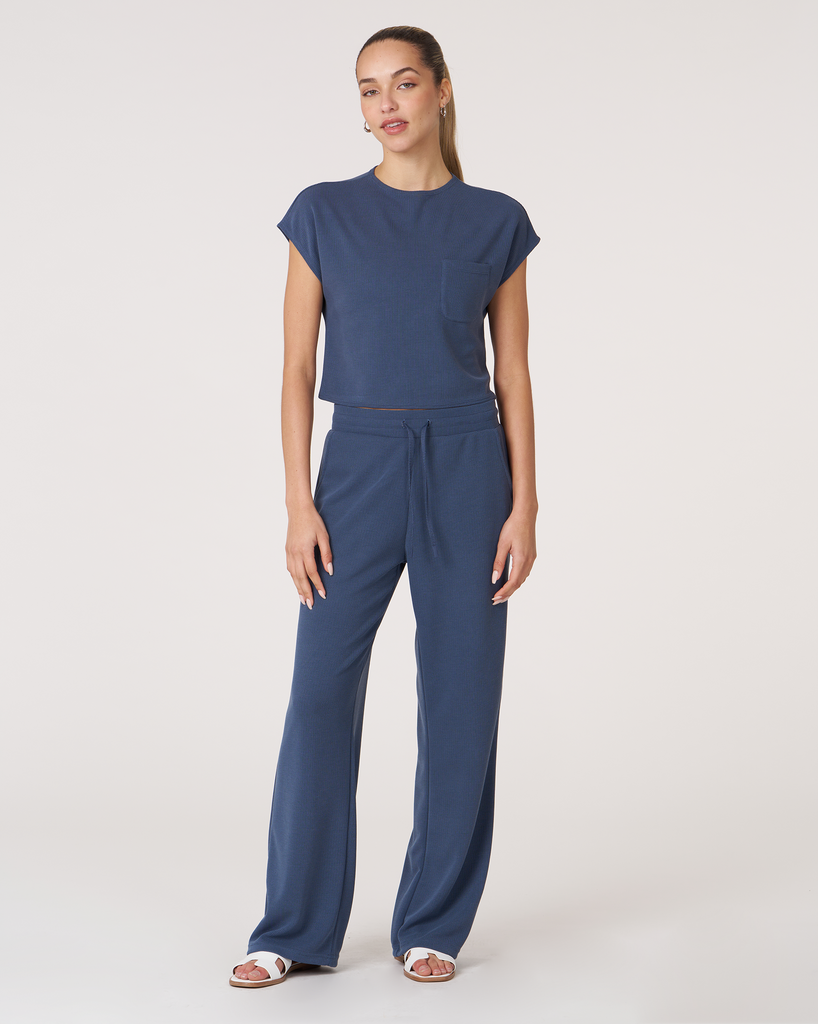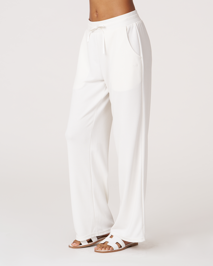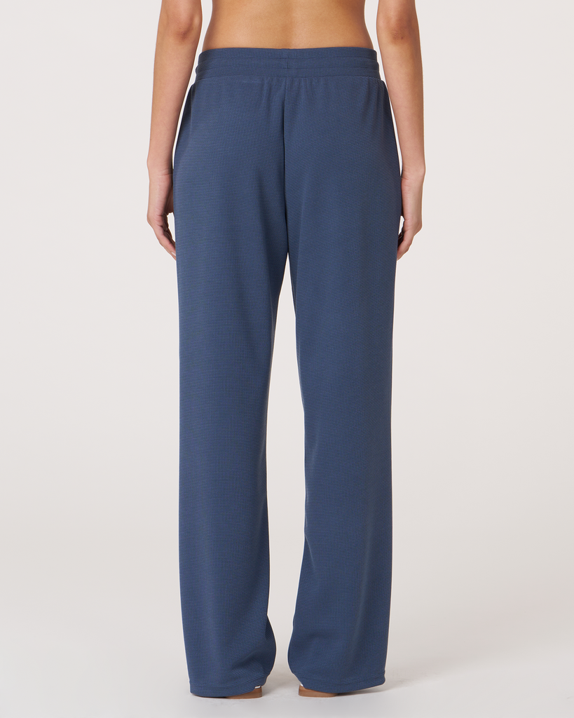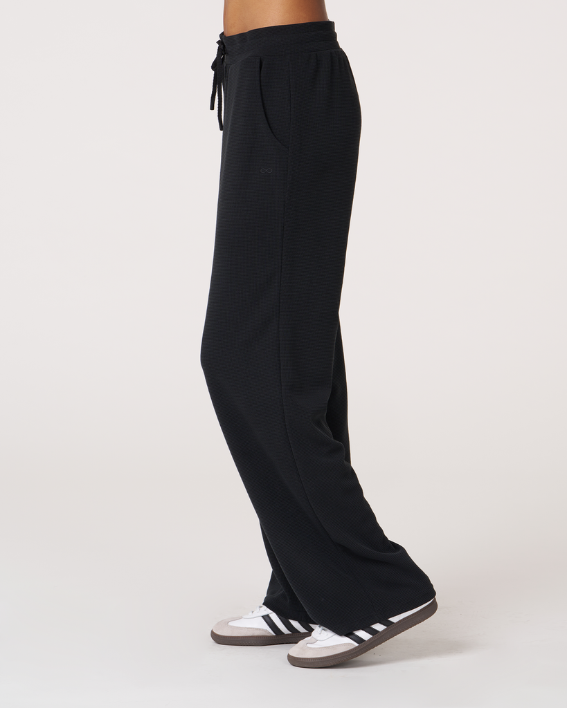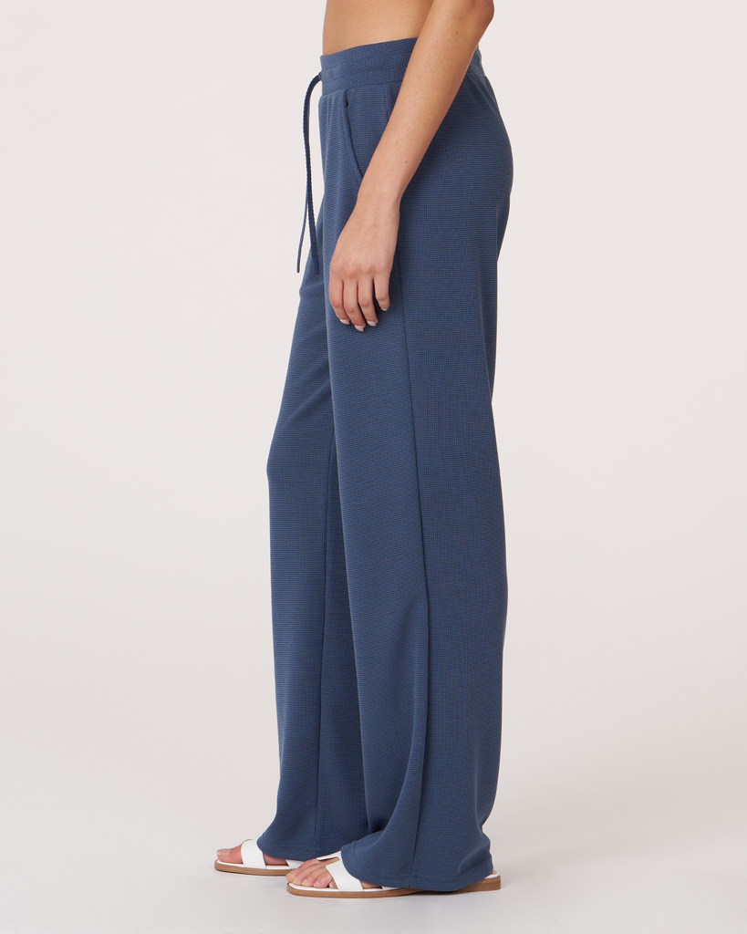 Made with a relaxed fit and designed to maintain its shape, these wide leg pants provide the perfect balance of comfort and style. Features pockets and an encased elastic waist with drawstring to adjust the fit. Ideal to wear for travel, errands, or weekend lounging. The waffle-knit exterior has a cotton-like feel for comfort and sweat-wicking interior to keep you cool and dry. Lightweight and drapey, it's made from a luxurious blend of 49% Modal, 45% polyester, 6% Spandex.