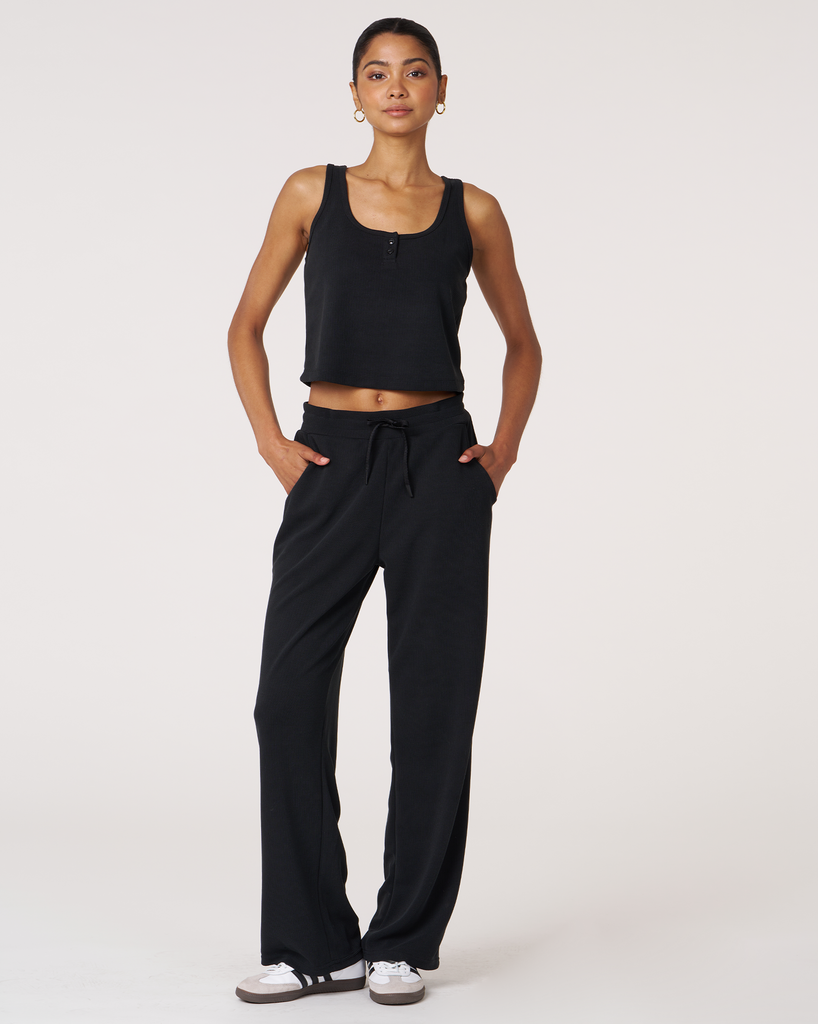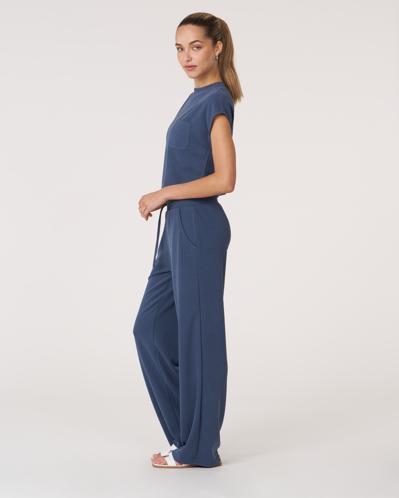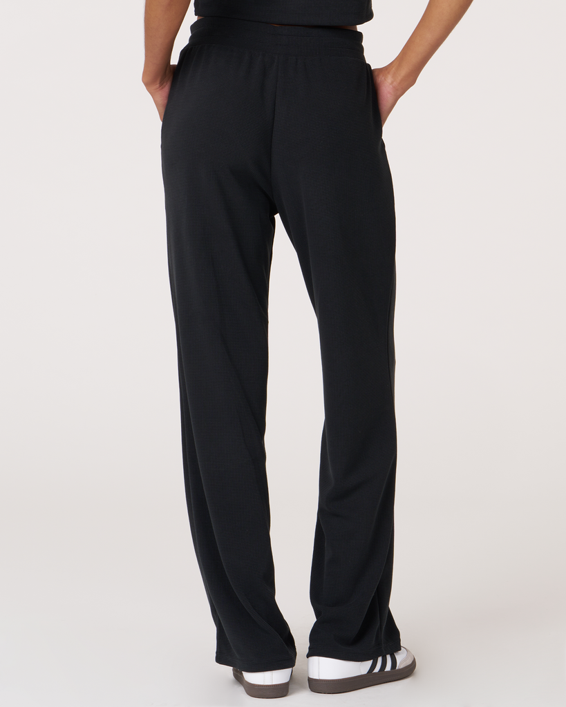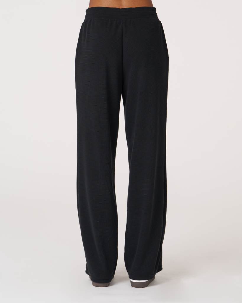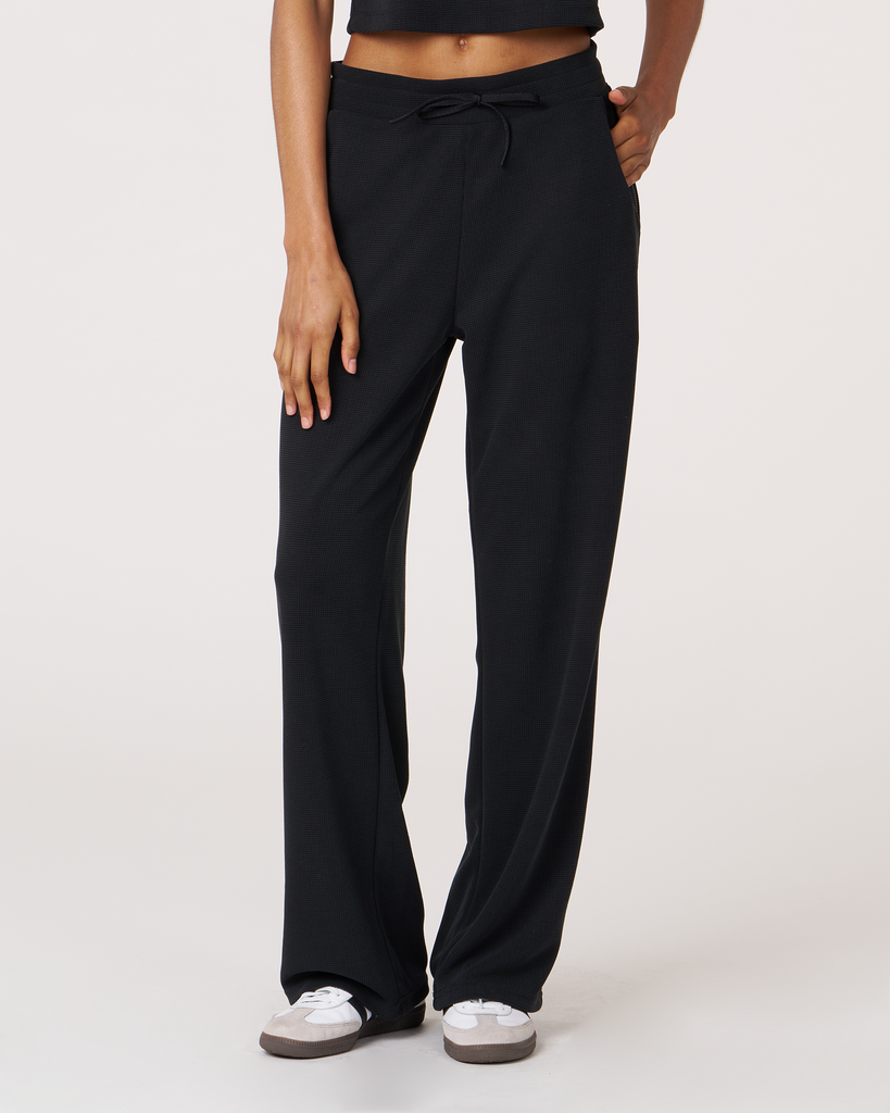 Made with a relaxed fit and designed to maintain its shape, these wide leg pants provide the perfect balance of comfort and style. Features pockets and an encased elastic waist with drawstring to adjust the fit. Ideal to wear for travel, errands, or weekend lounging. The waffle-knit exterior has a cotton-like feel for comfort and sweat-wicking interior to keep you cool and dry. Lightweight and drapey, it's made from a luxurious blend of 49% Modal, 45% polyester, 6% Spandex.