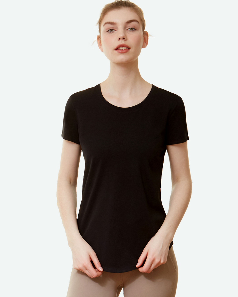 Take it easy in our daily wear short sleeve with a scooped hem for extra coverage. A wardrobe staple that is made in soft pima cotton, cool to touch modal, and a hint of stretch for ultimate comfort and style. Biocompact finish keeps the fabric long lasting and smooth.
