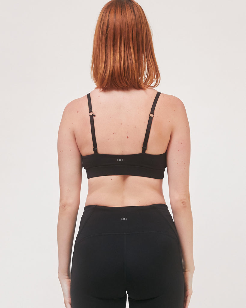 The Uplift V Neck Sports Bralette is our favorite for lounging or low impact activities. Utilize the J hook in the back for extra support. Featuring a plunging V neck, this bralette is bound to be your most flattering sports bra. Pairs well with our V waist Vendetta Leggings or with sweats for lounge. Made in our soft and breathable, cotton like finish Cloudlux fabric. It is 4 way stretch and sweat drying, making it comfortable to wear on a daily.