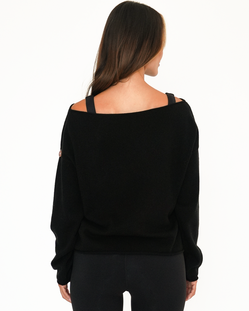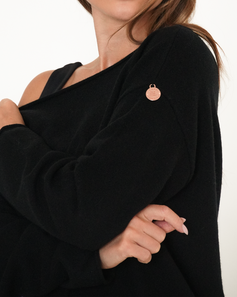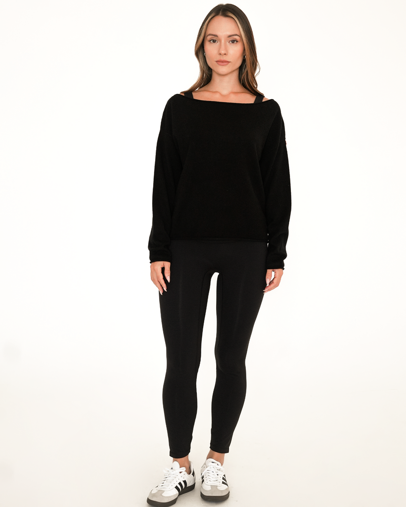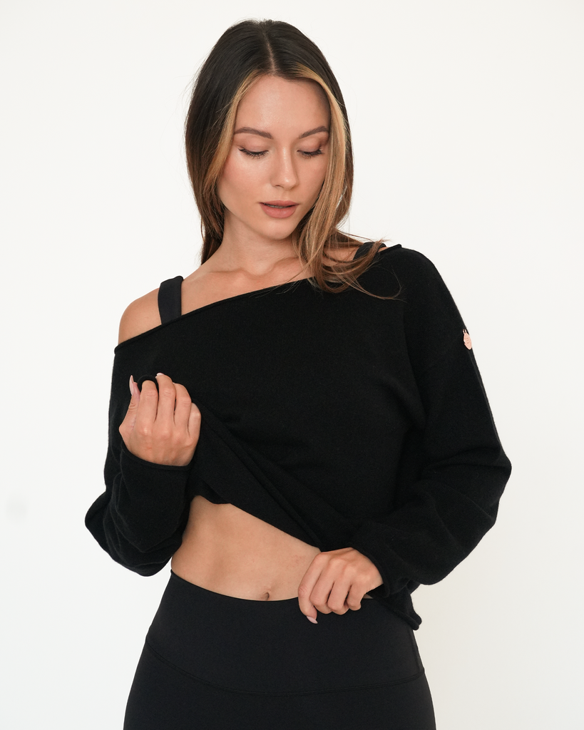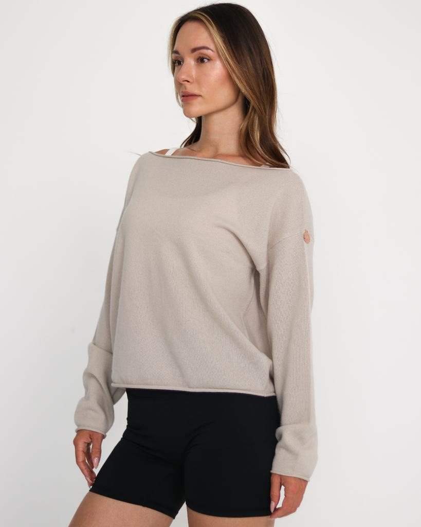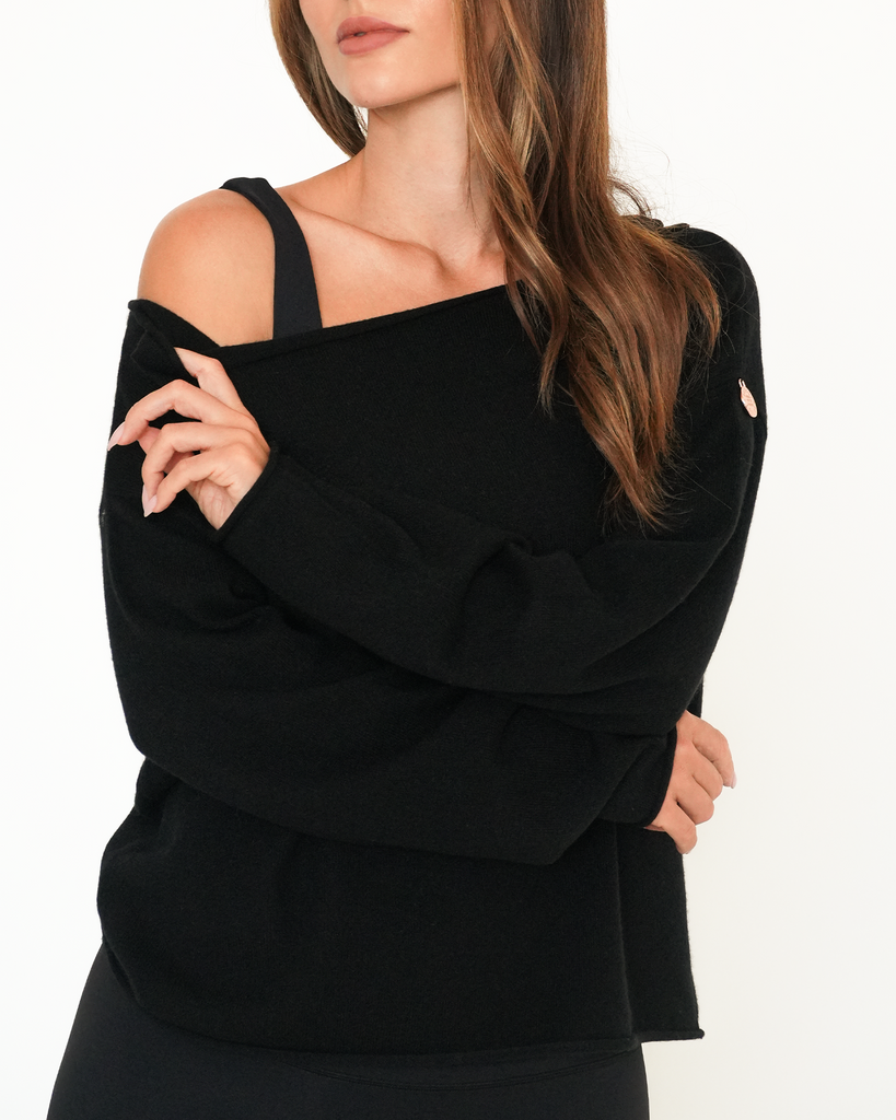 Comfort you can wear two ways. Knit in soft cashmere, this top features a wide neckline that works as a classic boat neck or can be shifted off the shoulder for a more relaxed edge. A medium lightweight yet plush and luxuriously warm, it layers effortlessly over activewear or dressed up easily for everyday wear, bringing luxury in your daily life.
