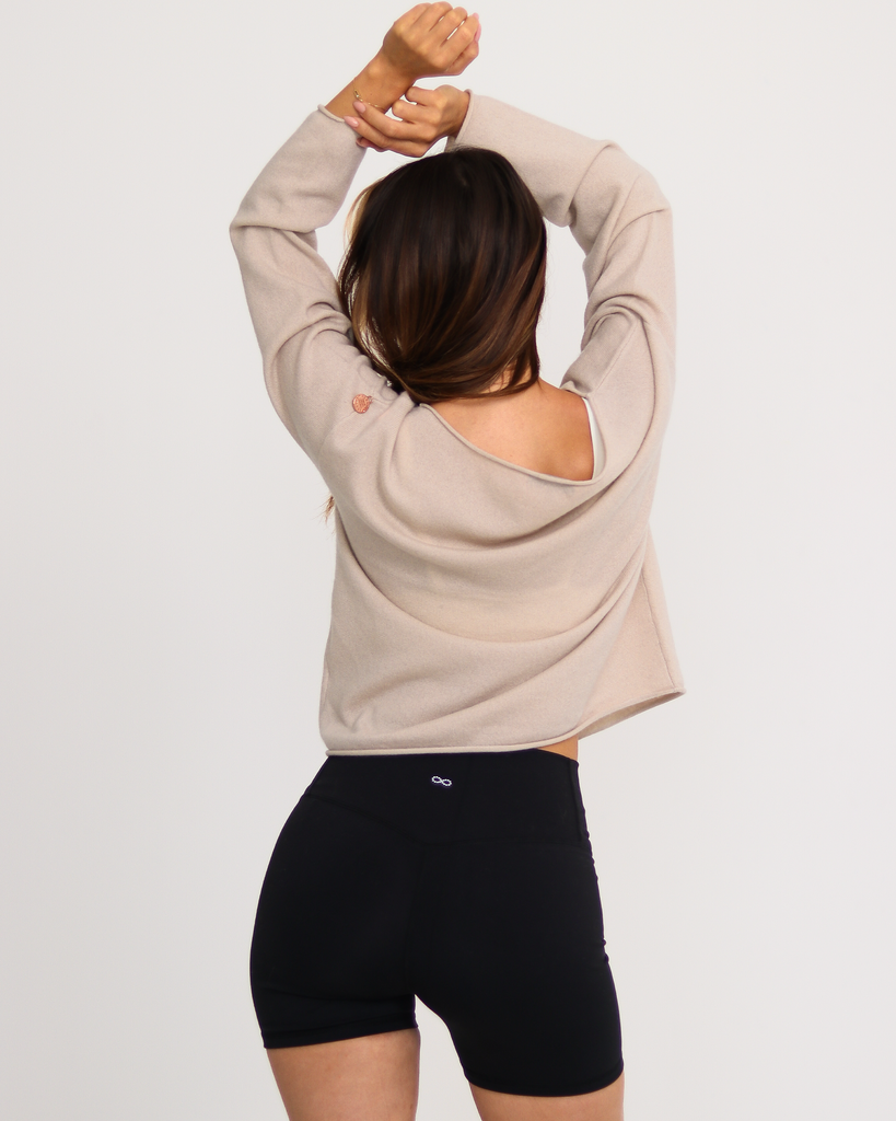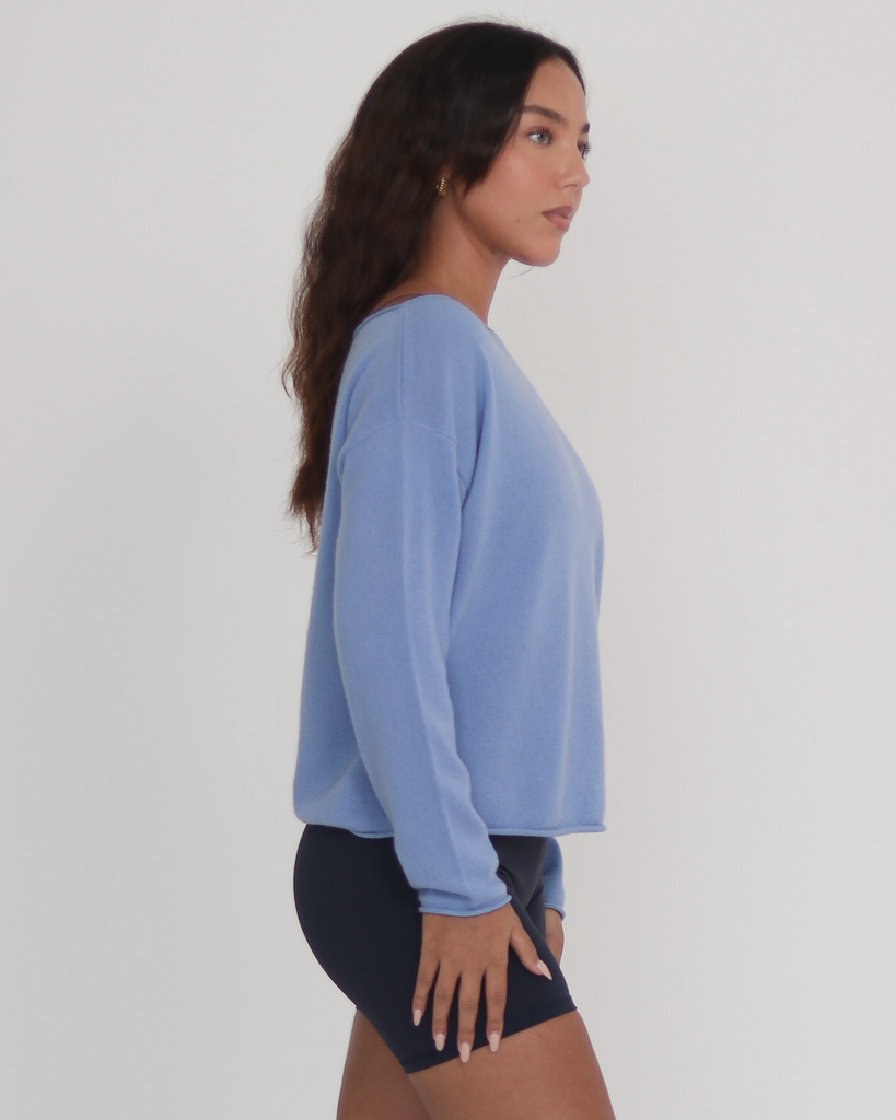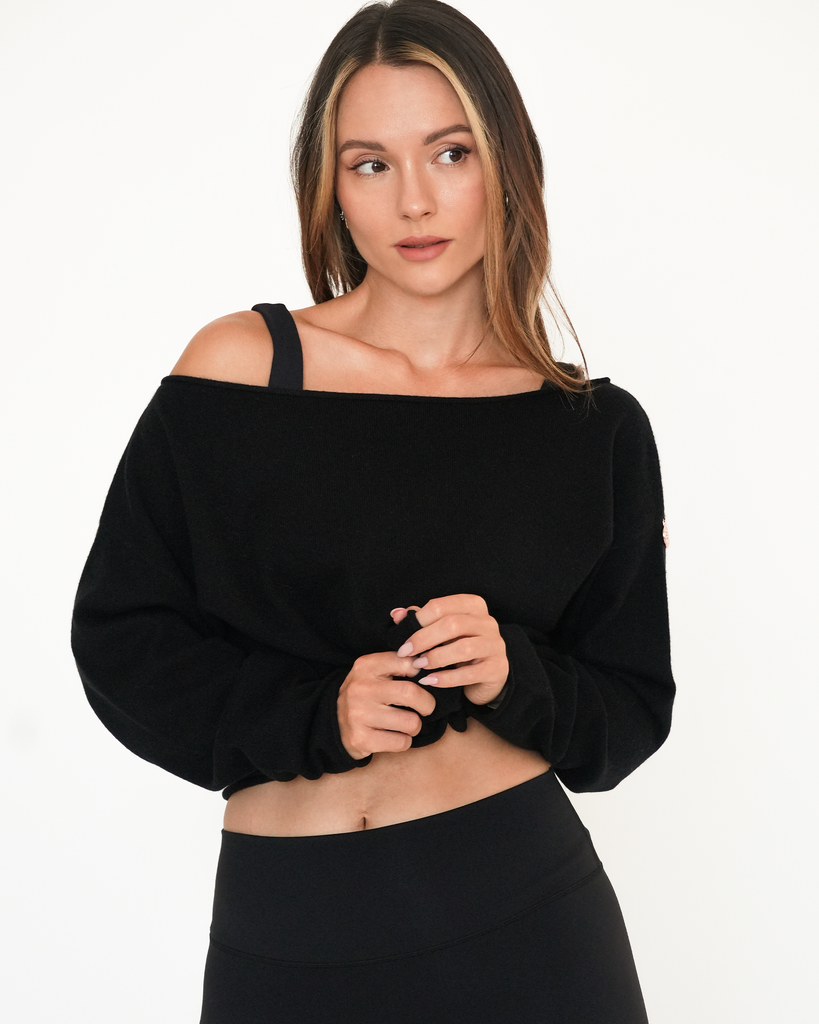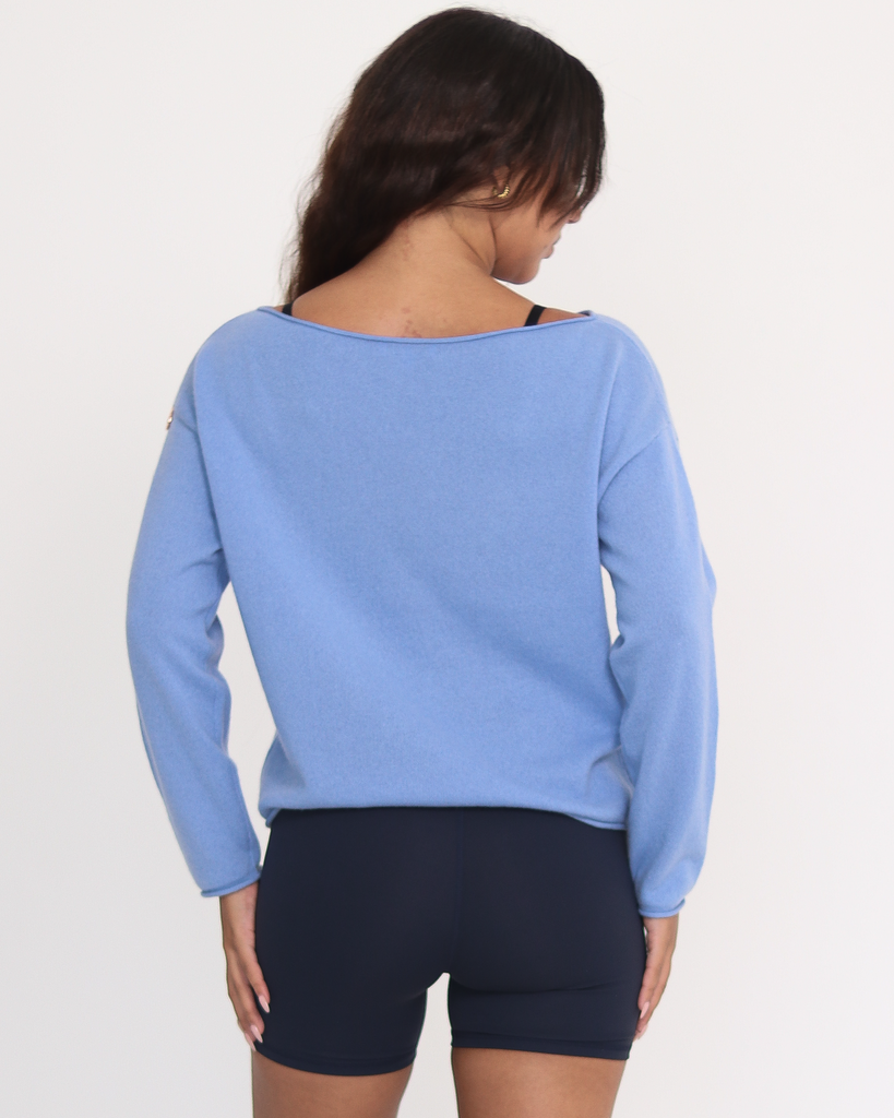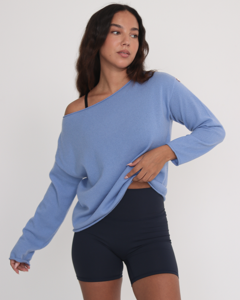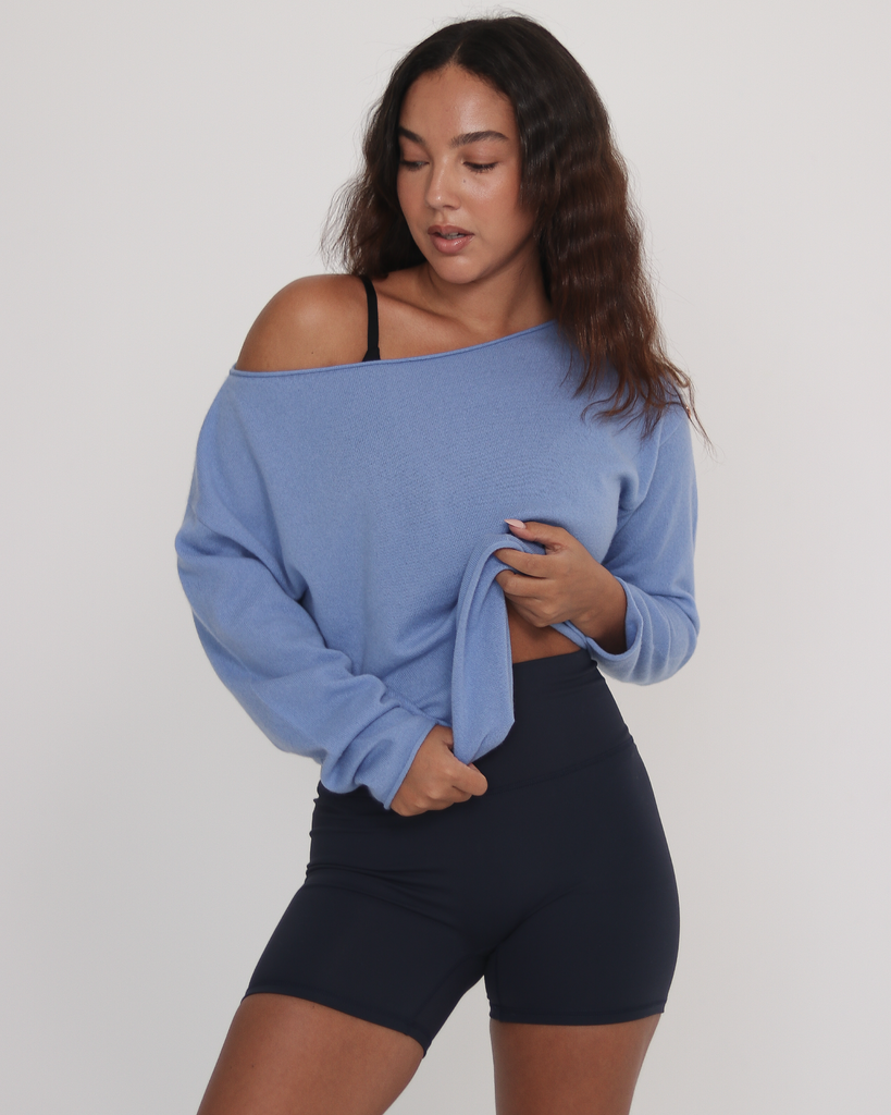 Comfort you can wear two ways. Knit in soft cashmere, this top features a wide neckline that works as a classic boat neck or can be shifted off the shoulder for a more relaxed edge. A medium lightweight yet plush and luxuriously warm, it layers effortlessly over activewear or dressed up easily for everyday wear, bringing luxury in your daily life.